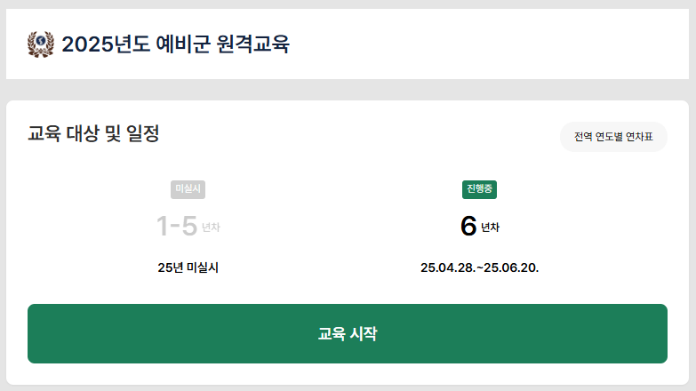 예비군 원격교육의 주요 대상은 6년차 예비군입니다.
