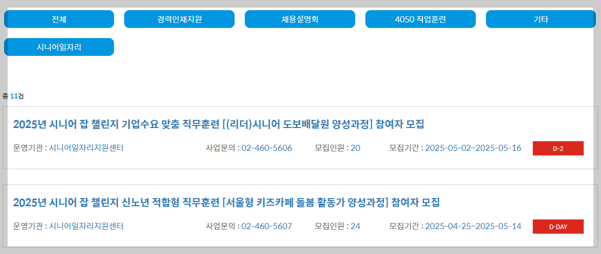 · 경력형 일자리 사업 (예: 공공기관 보조 업무)