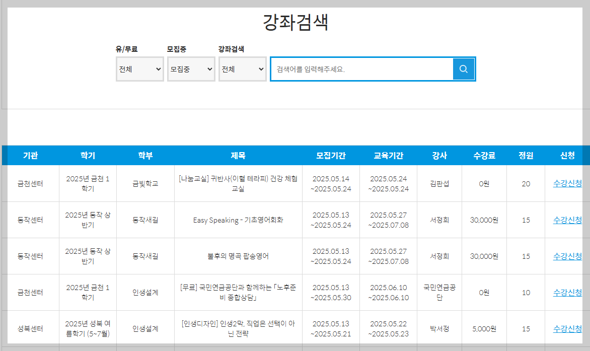 · 수강료: 대부분 무료 또는 소액 (1~3만 원 이내)