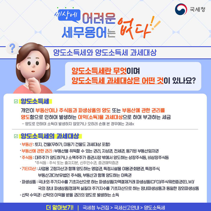 양도소득세는 자산을 양도(매각)할 때 발생하는 소득에 대해 부과되는 세금입니다.