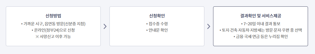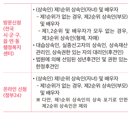 모든 상속인이 서비스를 이용할 수 있는 것은 아니므로, 본인의 신청 자격을 미리 확인하는 것이 필요합니다.