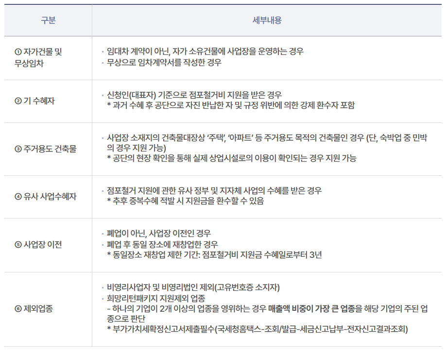 점포가 상업용 건물이 아닌 주거용 건물인 경우 지원 대상이 아닙니다.