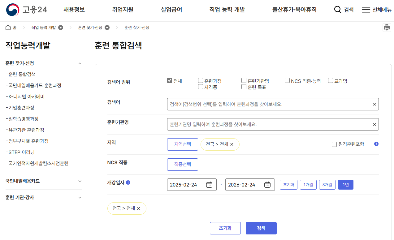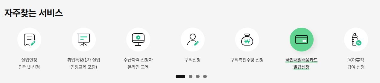 구직 신청이 완료되면, 고용24 홈페이지에서 내일배움카드를 신청할 수 있습니다.