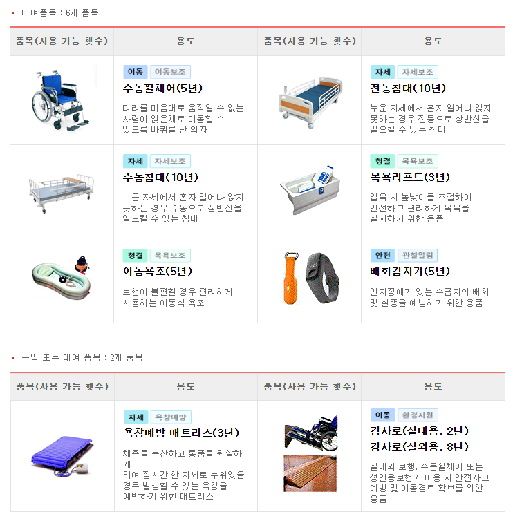 의료서비스 : 요양에 필요한 기기나 치료등도 지원