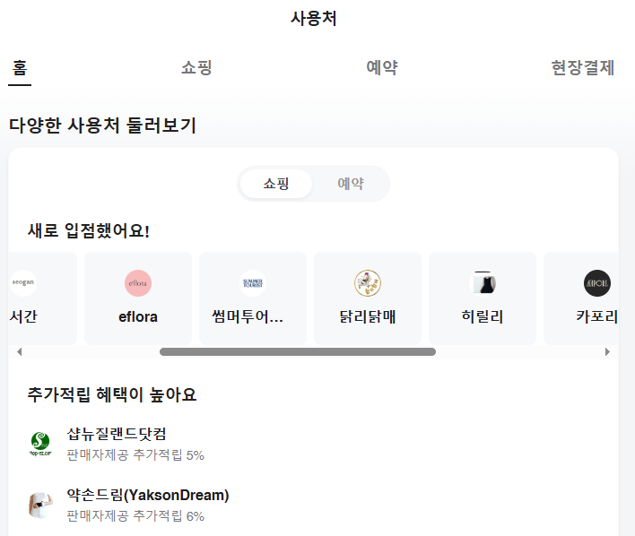 5. 물건 구매 시 5% 적립, 리뷰 쓰기 등