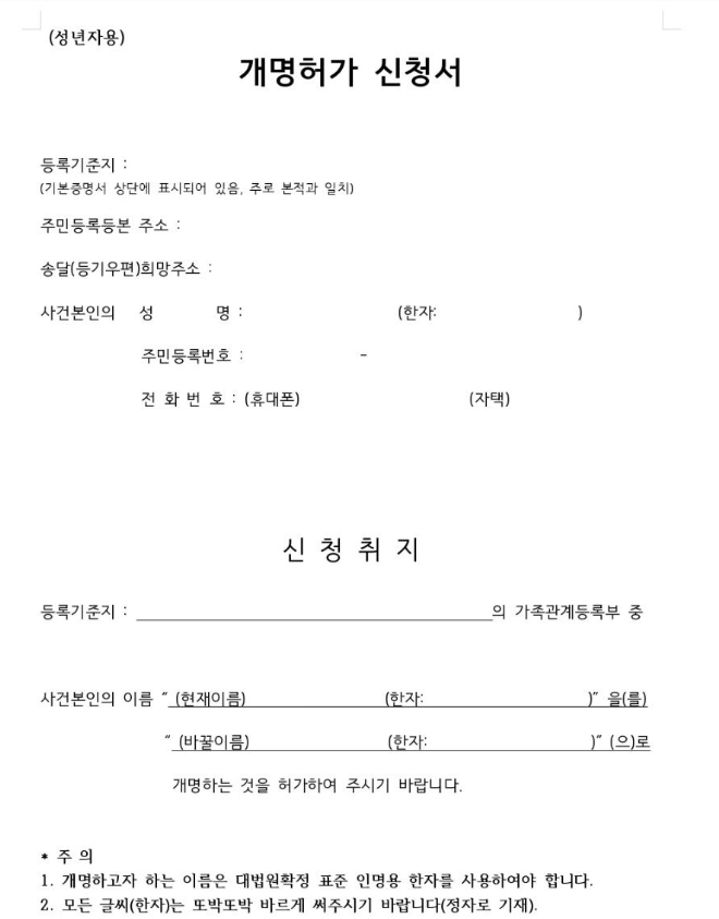 · 작명서는 선택 사항 (하지만 개명 승인 가능성을 높일 수 있음)