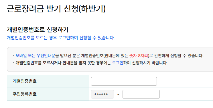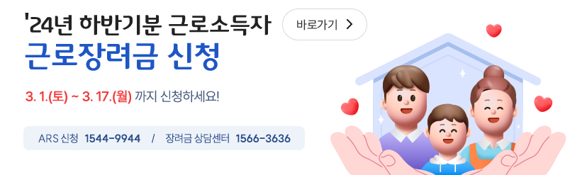 24년 하반기분 근로소득자 근로장려금 신청 기간입니다.