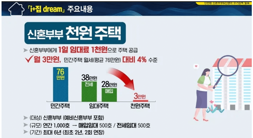 천원주택은 월 임대료 3만 원이라는 저렴한 가격에 제공되어, 신혼부부와 신생아 가구의 주거비 부담을 크게 줄여줍니다. 특히, 초저가 임대료로 생활비 절감을 돕고, 가계의 부담을 경감시키는 큰 장점이 있습니다.