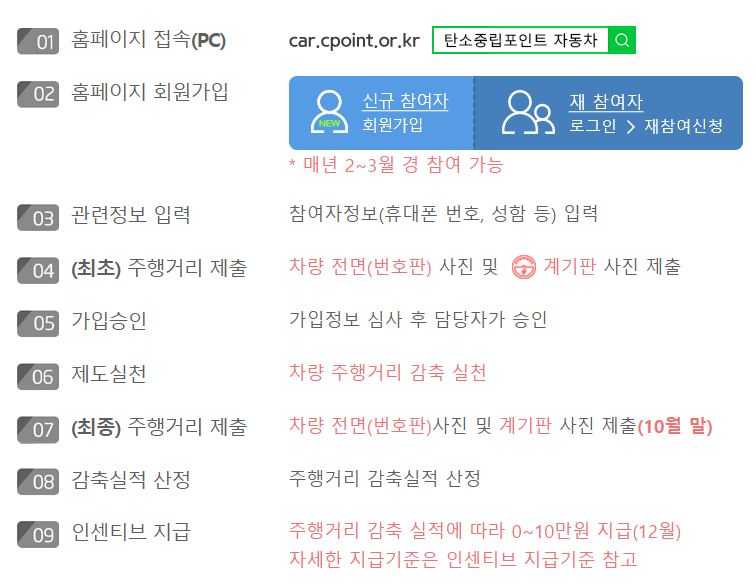 탄소중립포인트제 자동차 부문에서는 과거 평균 주행거리와 비교하여 감축량을 평가한 후 인센티브를 지급합니다.