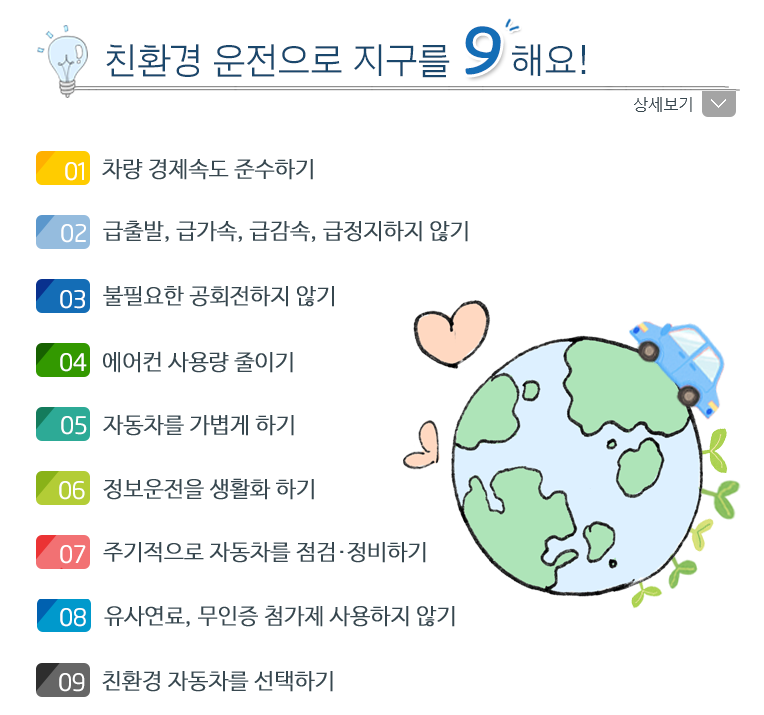 경제속도(60~80km/h) 준수, 급가속·급제동 줄이기 등의 운전 습관 개선으로 연비 효율 상승.