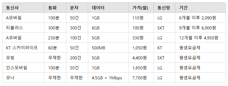 약정이 없고, 요금이 저렴한 대신 고객 서비스가 다소 제한적일 수 있다는 점을 유의해야 합니다.