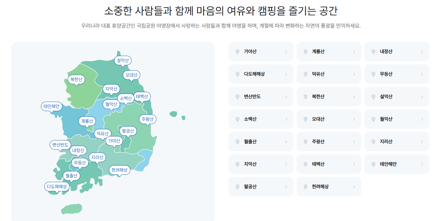 · 방문하고 싶은 국립공원을 선택 후 상세 정보 확인